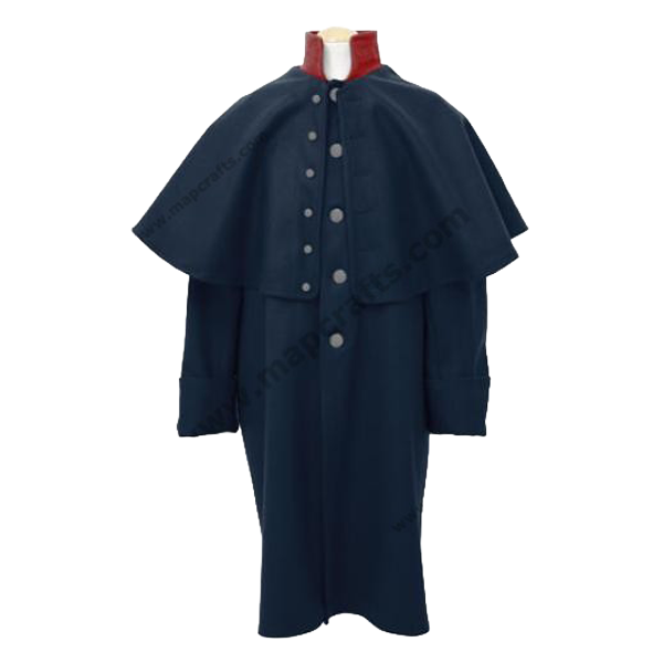 Gefertigt aus hochwertiger, schwerer Wolle, bietet der Mantel nicht nur ausgezeichnete Wärme, sondern auch eine klare, autoritäre Silhouette. Der rote Kragen setzt einen charakteristischen farblichen Akzent und verweist auf Rang, Prestige und die klassische preußische Uniformtradition. Der lange, gerade Schnitt unterstreicht die aufrechte Haltung und verleiht dem Träger eine eindrucksvolle Erscheinung.